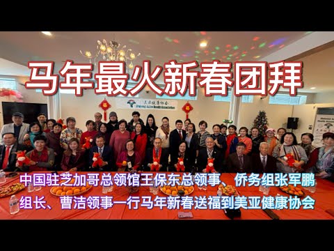马年最火新春团拜--中国驻芝加哥总领馆王保东总领事、侨务组张军鹏组长、曹洁领事一行马年新春送福到美亚健康协会